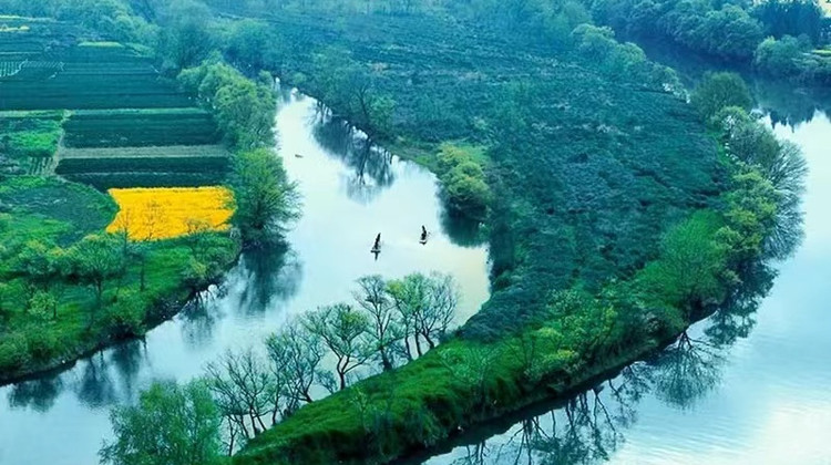 婺源月亮湾是去李坑景区的路上路过的一个小岛,多是摄影爱好者前来采风。清晨五点左右来俯瞰婺源月亮湾是美丽的,因为那时晨雾笼于水面上,白墙、黑瓦、金花、绿水在一片朦胧中更加亦幻亦真,宛如一张中国水墨山水画。