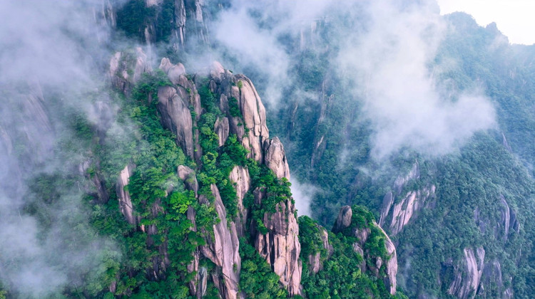三清山风景区位于上饶市东北部,有“小黄山”之称,因三清山-玉京峰、玉虚、玉华峰三座山峰挺拔屹立,神似道教玉清、上清、太清三位尊神列坐在山巅之上而得名。这里是道教名山,景色也有几分仙气,能看漂亮的云海日出,欣赏山间惟妙惟肖的奇石,还能走上高空栈道赏景。