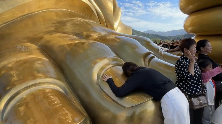 另有大理莲花宝座,慈眉善目,四周回廊大理石柱栏杆护持,上方雕龙刻凤,金碧辉煌。