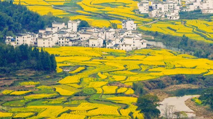 阳春三月,婺源篁岭景区数万亩层层叠叠的梯田上油菜花盛开,粉红的桃花、雪白的梨花点缀其中,是一副优美的水墨油画,在这里,你可以与大自然融为一体,与花海亲密接触。