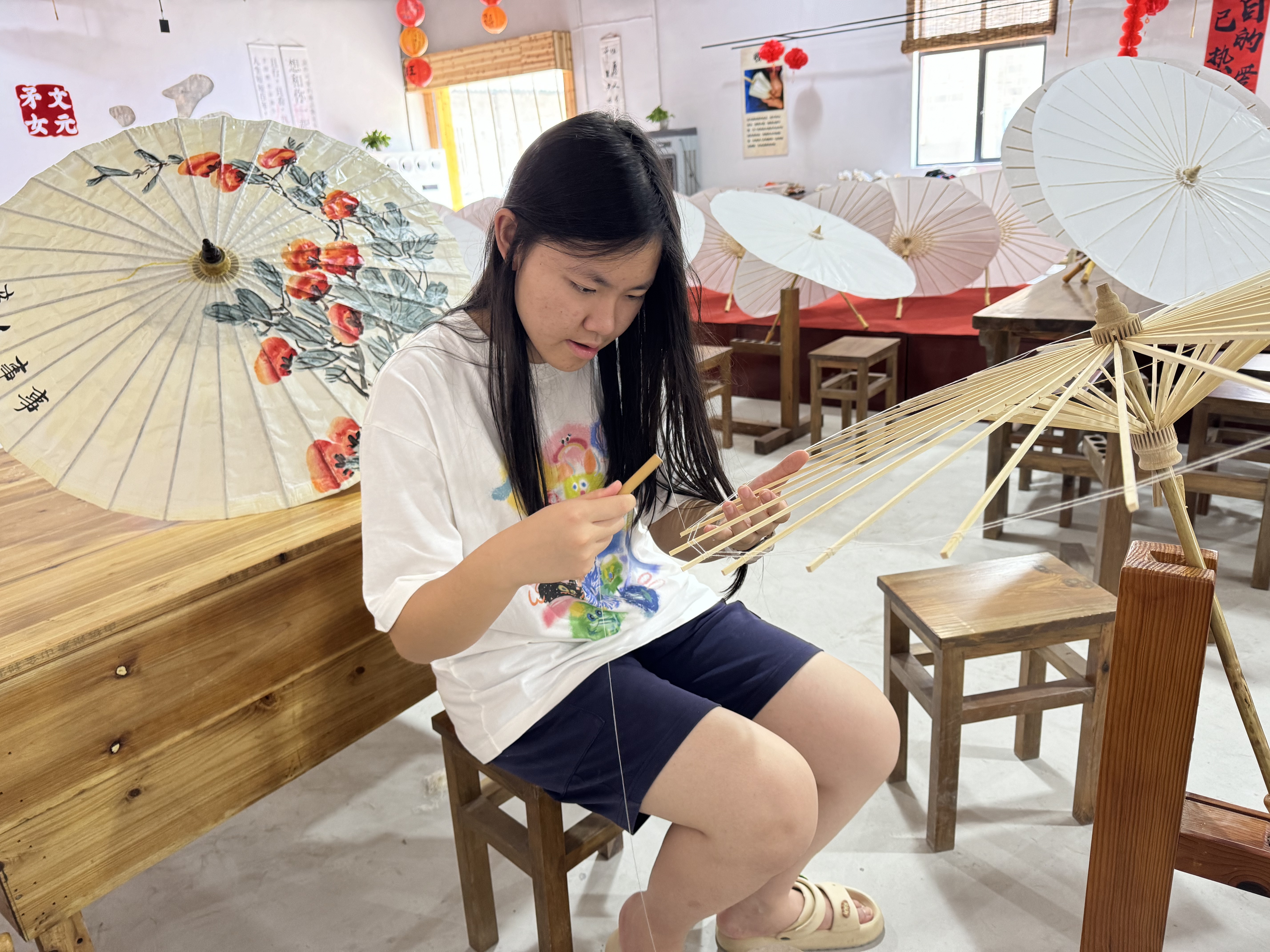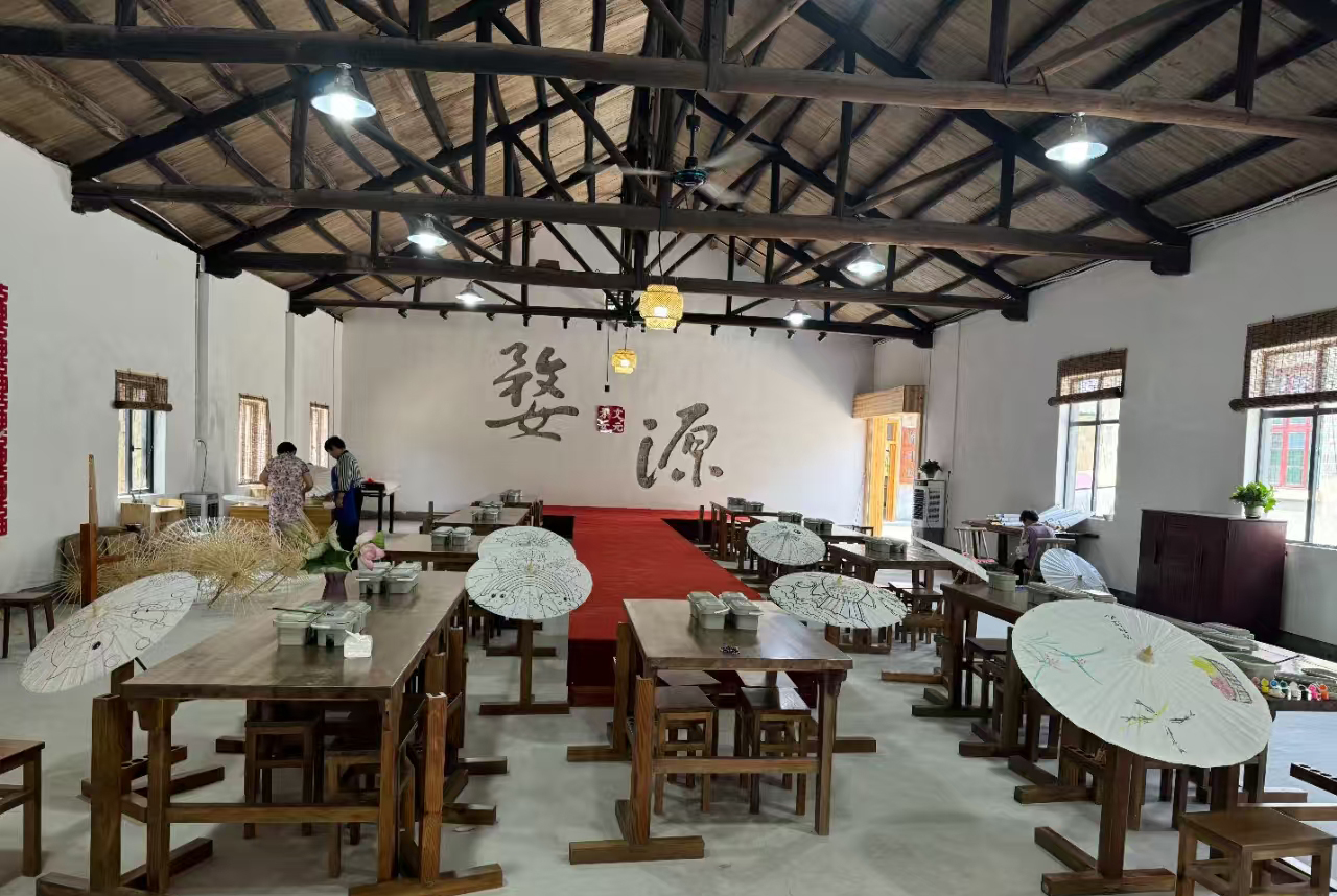 油纸伞体验流程为:油纸伞文化介绍-参观婺源油纸伞的制作技艺(绕伞圈-裱伞-穿线-绘画-收卷)-动手体验制作技艺-油纸伞手绘制作-作品展示