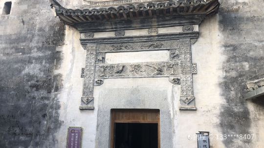 到了主入口,首先看到的是胡文光牌楼,建于明万历六年(公元1578年),气势恢弘,代表着胡氏家族的显赫地位。牌坊通体采用当地的“黟县青”大理石雕筑而成,顶上有五层,每一层都有不同的精美石雕。牌楼边是明经湖,可以拍摄徽派建筑的倒影。