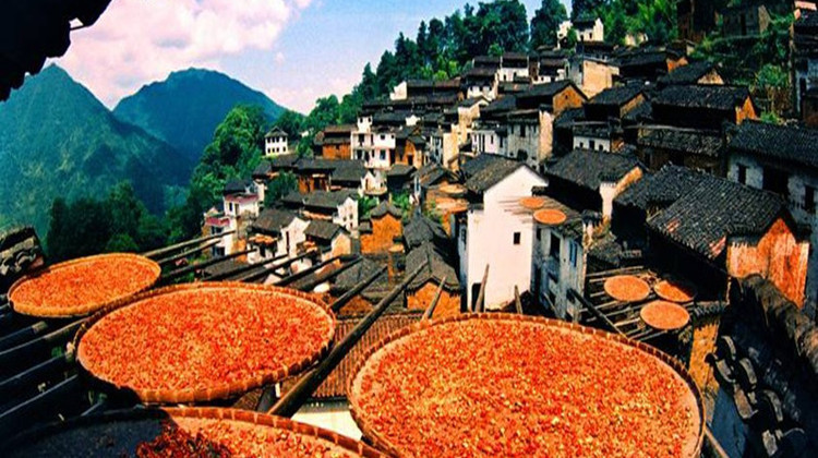 立秋一到,篁岭古村就成了一个天地晒场。来晒秋人家赏红枫,欣赏屋顶晒秋,枫林尽染,体验民风民俗,手摇风车、套南瓜等,感受晒秋人家的乡愁韵味。
