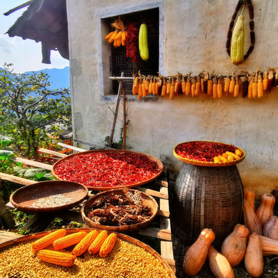 篁岭古村,属典型山居村落,周边千棵古树环绕,万亩梯田簇拥,造就了世外桃源般的山居田园生活。 这里自然环境优美,历史人文厚重,是古徽州历史文化名村。