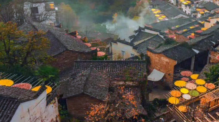 酒店集合乘车约1小时前往梯云村落、晒秋人家- 【婺源篁岭(含景交费-缆车)】(贵宾专享赠送:门票+千米观光缆车)。