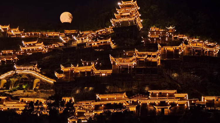 到了晚上,这里将上演隆重庄严的众妙阁秀,现代科技灯光与古建筑的结合如梦似幻,给人带来极具视觉冲击力的体验。