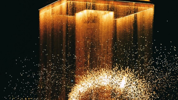 位于众妙阁的水舞台,每晚都会上演一场场真人演绎的大型实景水幕电影,水幕与光影交融,带来流光溢彩的视觉盛宴,演员随着时而激荡时而舒缓的音乐起舞,演绎出一幕幕跌宕起伏的盛世传奇故事。
