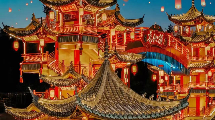 夜幕降临后,灯光开启,可自行欣赏夜景,拍出超绝大片!