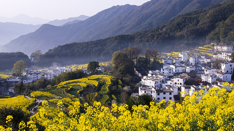 阳春三月,篁岭数万亩层层叠叠的梯田上油菜花盛开,粉红的桃花、雪白的梨花点缀其中,是一副优美的水墨油画,在这里,你可以与大自然融为一体,与花海亲密接触。