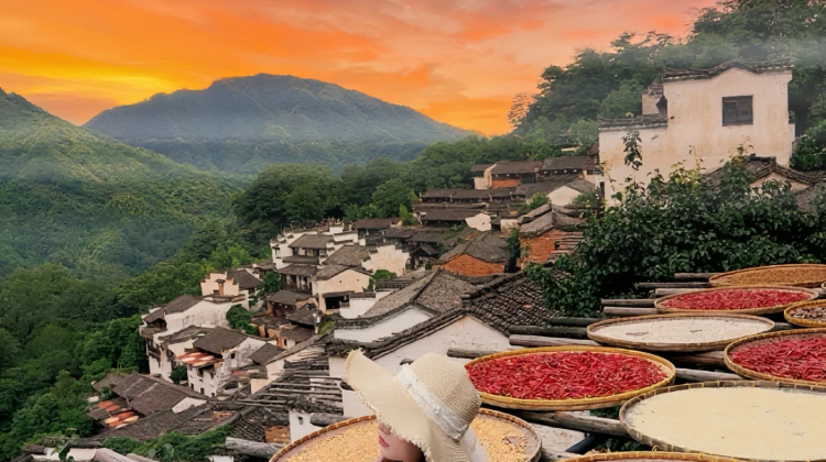 立秋一到,篁岭古村就成了一个天地晒场。来晒秋人家赏红枫,欣赏屋顶晒秋,枫林尽染,体验民风民俗,手摇风车、套南瓜等,感受晒秋人家的乡愁韵味。