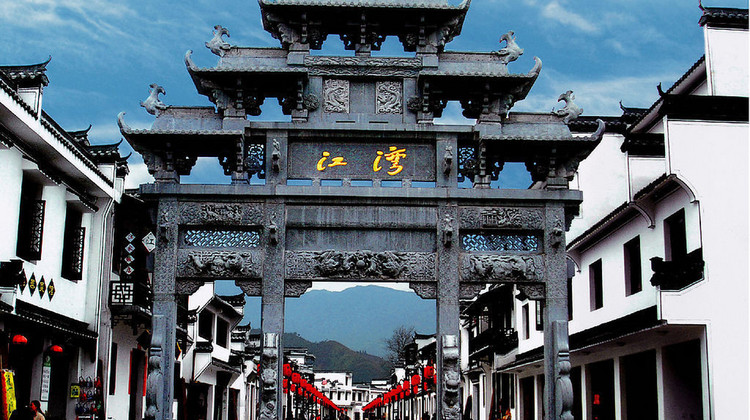 江湾景区是一座具有丰厚历史文化底蕴的古村落,位于婺源县东北部。江湾景区的建筑布局极具特色,一街六巷,纵横交错,从后龙山俯瞰,巷道间竟构成一个硕大的“安”字,令人叹为观止。古镇入口即是规模庞大的“萧江大宗祠”,是婺源乃至江南很大的宗祠,尽显王室气派。祠堂分前院、前堂、中堂、后堂四进,祠内的砖雕、木雕、石雕形态逼真,清丽高雅。江湾人引以为骄傲的是后龙山,自古以来,江湾人不准任何人动后龙山上一草一木,生态环境保护的非常好。走进后龙山,就如同走进了原始森林,满山古木,遮天蔽日,给依山而建的江湾古村增添了不少神韵。江湾文风鼎盛、群贤辈出,孕育出了清代经学家、音韵学家江永,明代隆庆年间户部侍郎江一麟、清末著名教育家、佛学家江谦等一大批学士名流,是当之无愧的婺源“书乡”代表。村庄内现在还保存着江永纪念馆,三省堂,敦崇堂,培心堂,东和、南关、西安、北钥四座古门亭,岳武穆构筑的岳飞桥,明代剑泉井等古老的徽派建筑,非常值得一看。此外,游人还可以在百工坊、鼓吹堂、公社食堂等景点中体会旧时手工艺匠人的传统技艺,更可观赏徽剧、婺源民歌等传统剧目。