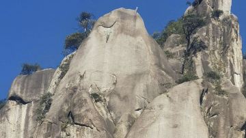 巨蟒出山是一座象形石柱,经大自然长期的风化与重力作用而形成,峰壁峭立,顶部稍平,颈部略细,就像一条破山而出的巨蟒,可谓是大自然的鬼斧神工。它与东方女神观遥遥相对,从金沙索道(东部索道)上山后到南清园景区游玩途中便可欣赏到。