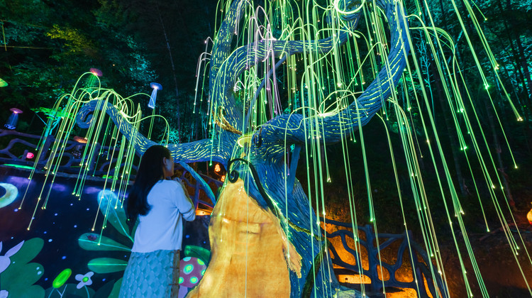 夏天来篁岭,开启一场奇妙夏夜之旅。一览古村夜景,感受篁岭的夕阳晚霞,万家灯火,随着舞动盘旋的百米长龙游走在乡间的路上,提一盏花灯漫步在古朴的街巷,感受魔幻森林的浪漫,在村口欣赏一场复古老电影,逛一逛乡村的纳凉集市。