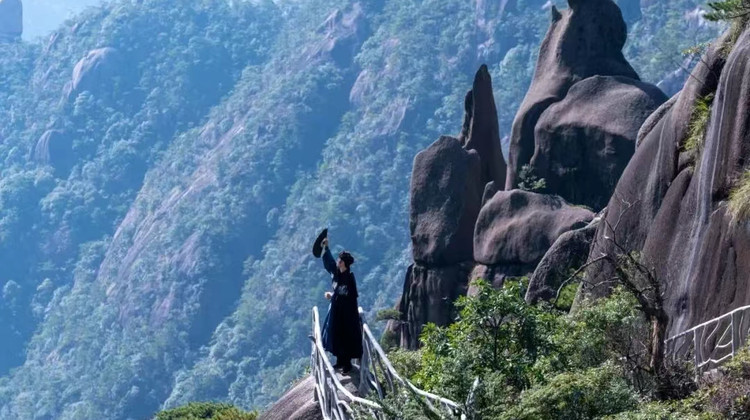 玉京峰景区因玉京、玉虚、玉华三峰凌立而闻名,其中玉京峰的云海、日出、日落气势磅礴,也是纵览整个三清山景区美景的好位置。不过正是由于山峰陡峭,并不建议游客登上玉京峰顶,毕竟安全重要。