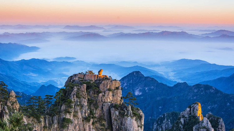 黄山风景区坐落于黄山市黄山区汤口镇境内。黄山自古以来就是中国数一数二的名山,奇松、怪石、云海、温泉被称为黄山的“四绝”。除此之外,雾凇、雪景、日出也是游人不会错过的景观,古人有“五岳归来不看山,黄山归来不看岳”的说法。