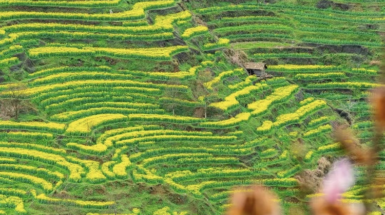 阳春三月,婺源篁岭景区数万亩层层叠叠的梯田上油菜花盛开,粉红的桃花、雪白的梨花点缀其中,是一副优美的水墨油画,在这里,你可以与大自然融为一体,与花海亲密接触。