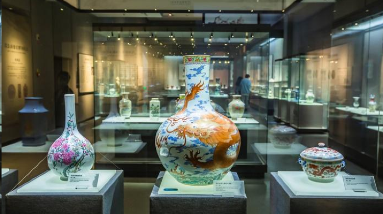 馆内展品有:五代的青瓷、白瓷;宋代的青白瓷;元代的青花瓷、卵白瓷、釉里红;明代的青花瓷 、五彩瓷、斗彩、各类颜色釉瓷;清代的数十类精品陶瓷。