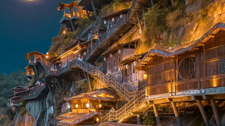 西海岸景区是景区观景开阔的平台,让人称奇的高空栈道也正是位于此。步行在高空栈道上,感受悬崖绝壁之上闲庭信步的乐趣,欣赏连绵群峰、幽深峡谷的壮观之景,还可远看晚霞、云海的绚丽秀美。