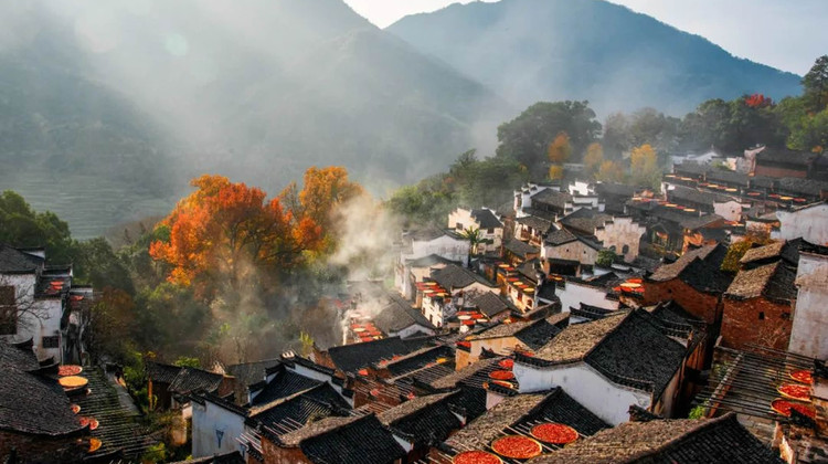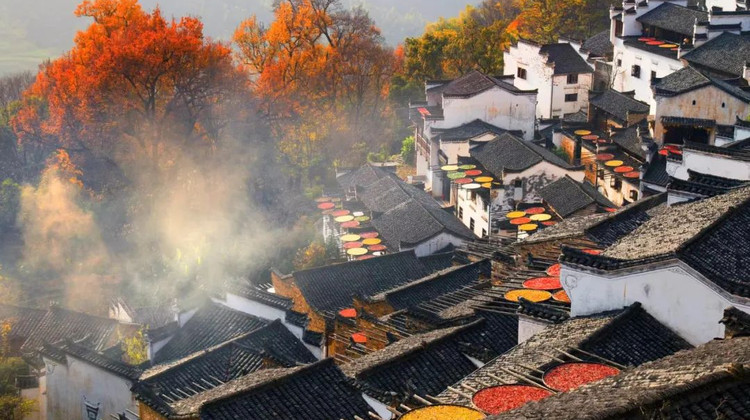 立秋一到,篁岭古村就成了一个天地晒场。来晒秋人家赏红枫,欣赏屋顶晒秋,枫林尽染,体验民风民俗,手摇风车、套南瓜等,感受晒秋人家的乡愁韵味。