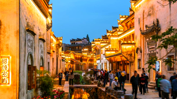 弦高西湖凼文旅街区位于江西上饶市婺源县城,是一处集徽州文化、市井生活、山水意境与现代创意体验于一体的文商旅综合体。街区地理位置优越,交通便捷。街区在改造中秉持“新旧共生”理念,保留部分古木、古屋、古街道、古城墙和水系,复原历史街巷布局。建筑严格遵循徽派建筑传统规制,建筑各具特色,木雕、砖雕、石雕技艺精湛,是研究徽州历史与建筑艺术的活态样本。街道两旁特色小吃琳琅满目,充满烟火气息。街区还有众多非遗体验工坊,游客可近距离观看非遗传承人展示技艺。此外,常态化举办多种民俗演艺活动,如梦如幻,让游客流连忘返。