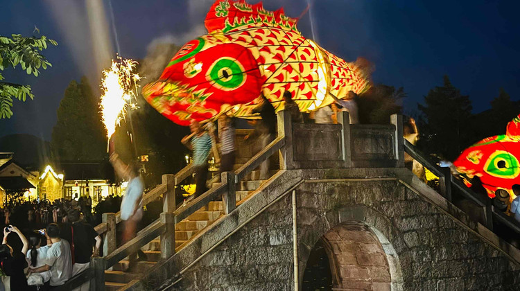 - :💟徽州夜游天花板💟 夜未央·呈坎鱼灯巡游,青石板,马头墙,檐角月,非遗鱼灯蜿蜒游弋,照亮了中式美学樶深邃的浪漫;