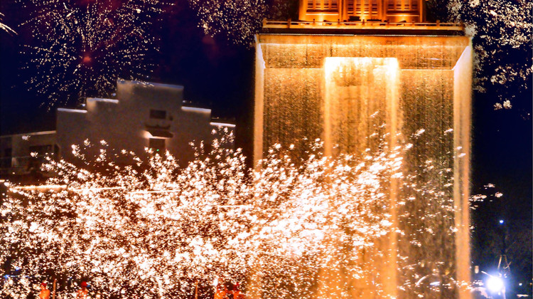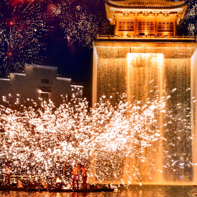 烟花秀/烟花瀑布观赏地点:五显湖金阁